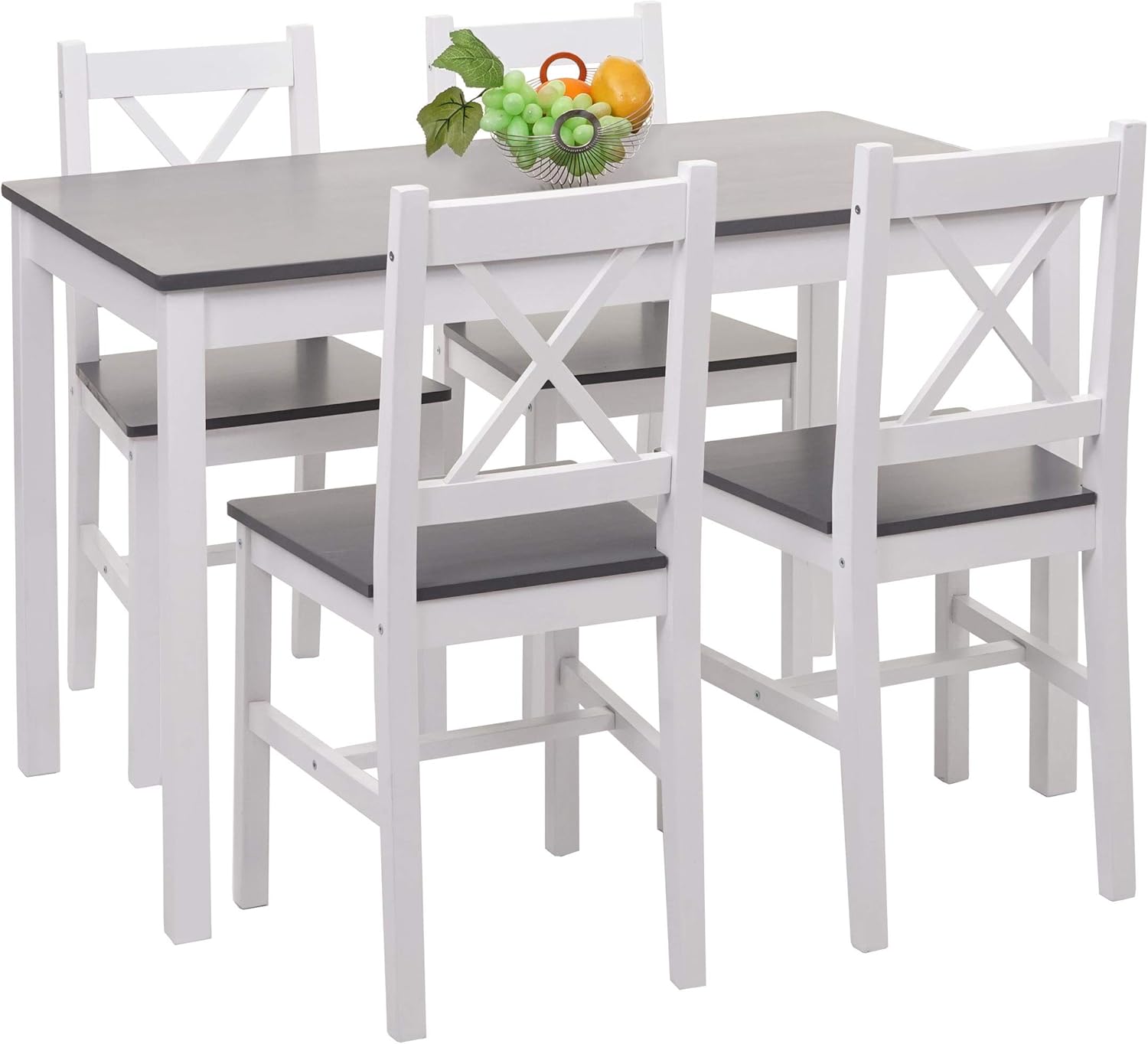 Mendler Set Tavolo con 4X sedie Country Classica Cucina Soggiorno HWC-F77 Legno massello Bianco e Grigio